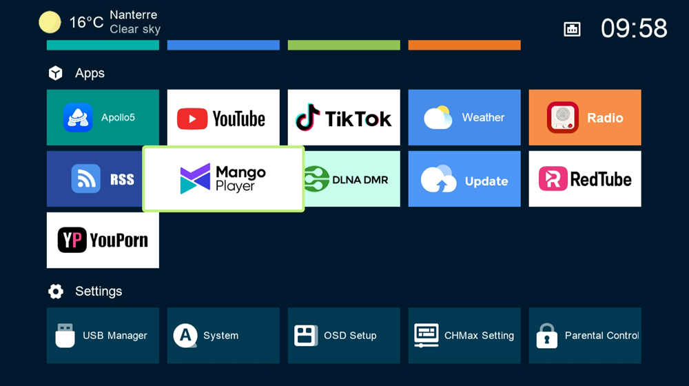 Apart from the Forever IKS and Apollo5, the device supports Mango Player, allowing you to enjoy a versatile media playback experience. You can add you own portal.